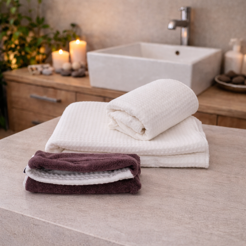 Je propose aux Etablissements du linge de bain en coton, facile d'entretien, esthétique et durable.