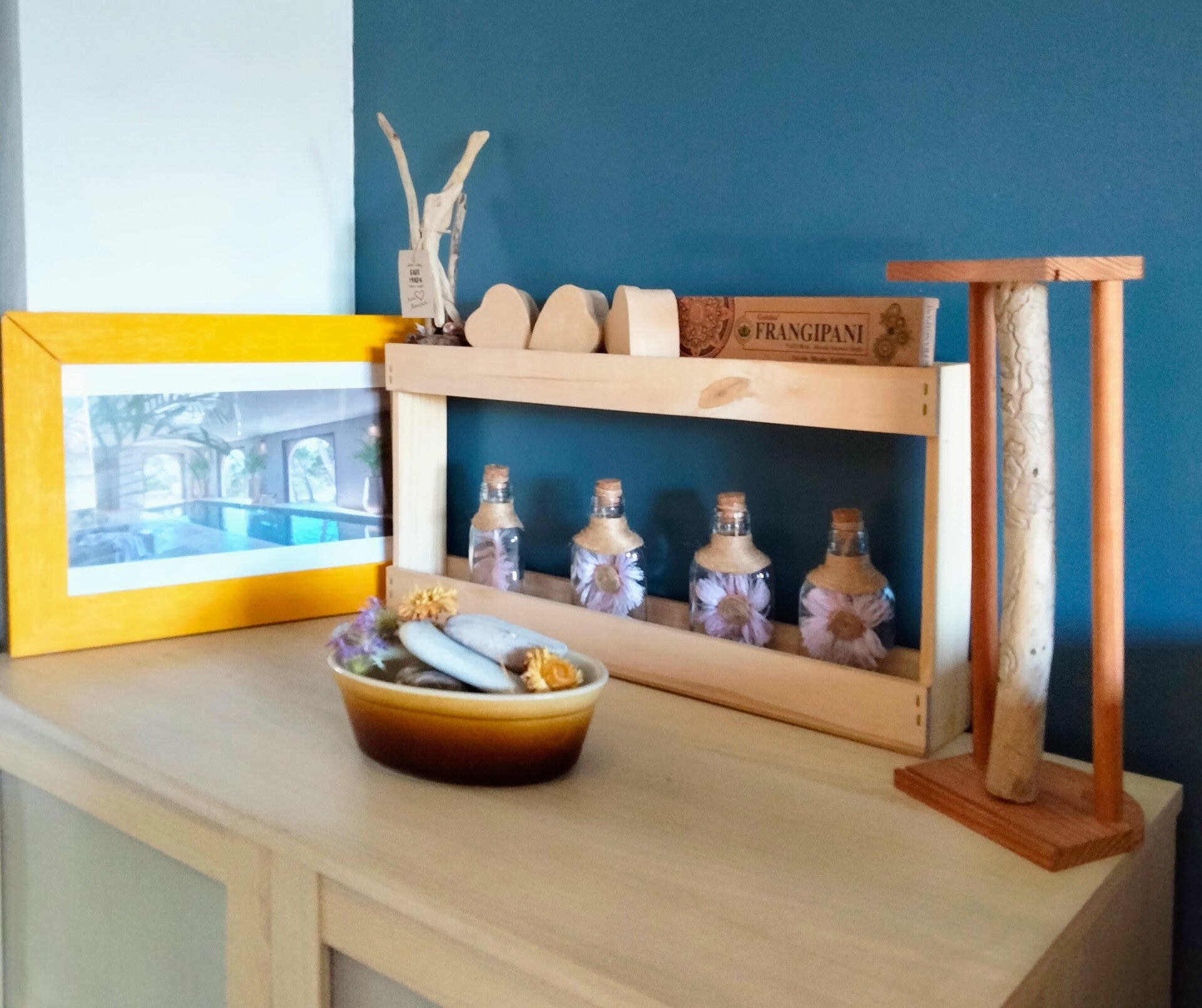 Mon atelier est un espace calme et organisé, où les matières naturelles et les couleurs claires prédominent. C'est dans cette atmosphère sereine que je donne vie à mes créations, en veillant à chaque étape de la conception.