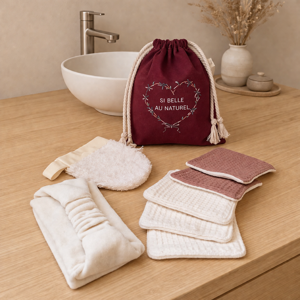 Coffret rituel double nettoyage visage | Lingettes, mini-gant, bandeau et serviette
