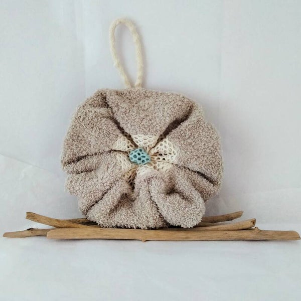 Grande fleur de douche bi-face en coton bio - couleur lin