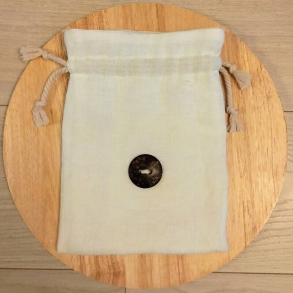 - 1 pochon plat en lin doublé lin (+/- l18.5 x h24 cm) : fermeture par cordon tressé en coton et bouton bois naturel, signature de la collection Rituel.