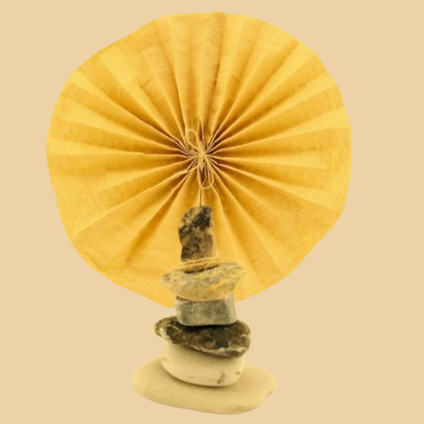 Prenez le temps nécessaire pour réussir à les empiler sans qu'elles ne tombent ! Seuls les deux galets supérieurs sont assemblés et décorés d'une très discrète ficelle en toile de jute naturelle. C'est une décoration à poser à plat. La composition est expédiée comme sur la photo (entourée de raphia) ; Il vous suffira de le couper pour empiler les pierres selon votre goût.