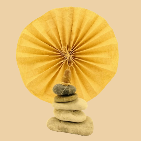 Prenez le temps nécessaire pour réussir à les empiler sans qu'elles ne tombent ! Seuls les deux galets supérieurs sont assemblés et décorés d'une très discrète ficelle en toile de jute naturelle. C'est une décoration à poser à plat. La composition est expédiée comme sur la photo (entourée de raphia) ; Il vous suffira de le couper pour empiler les pierres selon votre goût.