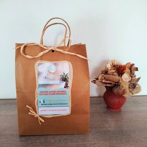 Les fleurs de douche sont soigneusement enveloppées dans un papier de soie et glissées dans un sac kraft décoré, sobre et responsable. Un guide d'utilisation des fleurs de douche Mirella&Vous sera joint à votre colis. S’il s’agit d’un cadeau, votre message sera écrit à la main sur un papier choisi avec soin.